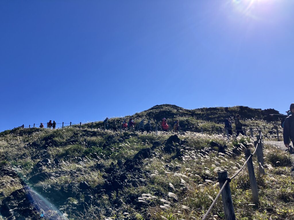 帰り道ではススキが一面に広がる大地や植物の移り変わりを感じながら戻りました。今回は「山のふるさと」と「海のふるさと」がつながる、特別な三原山トレッキング。秋晴れの中で火山の歴史に触れ、植物や野鳥の命を感じる豊かな時間になりました。自然がもたらす恵みとつながりを、これからも一緒に感じていけたらと思います。また大島でお待ちしております!