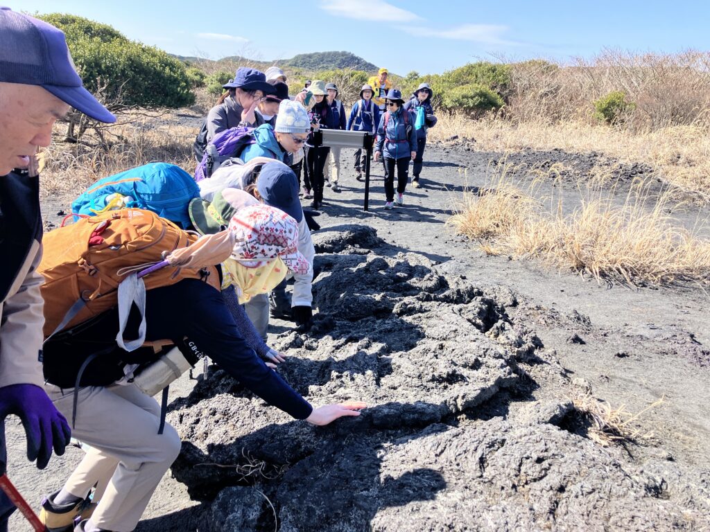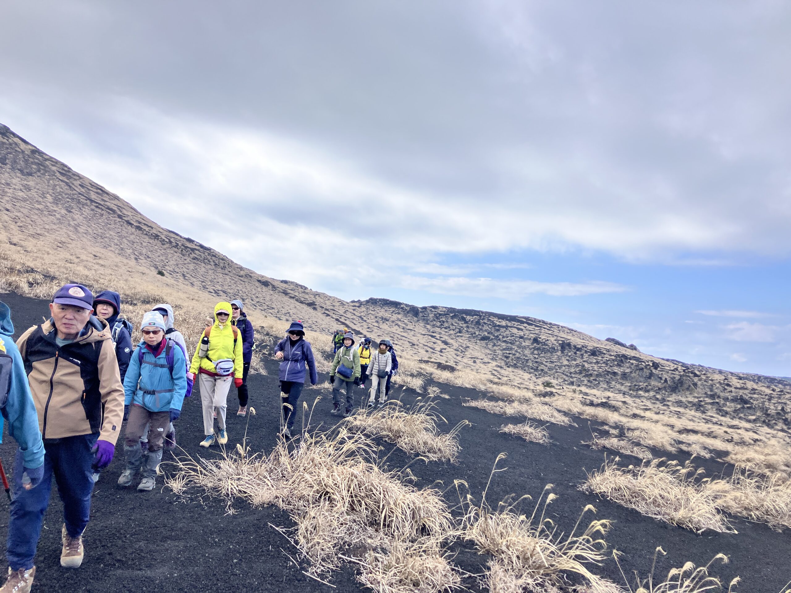今日のお客様は、とにかく元気いっぱい!トレッキング中も、「この溶岩はどうやってできたの?」「あの煙はなに?」と積極的に質問が飛び出し火山に興味津々でした。再生の一本道を歩きながらあんこ椿は恋の花をみなさんで合唱しながら進んで行きました。東北の皆さんの温かさとバイタリティに触れ、私自身もたくさんの元気をいただいた、本当に楽しいツアーとなりました。