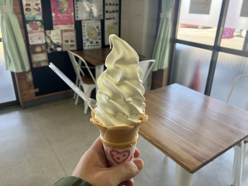 - ツアーの締めくくり:最後はやっぱりこれ!ぶらっとハウス名物の大島牛乳ソフトクリーム。「風に吹かれて歩いた後の冷たい甘さは格別ですね」と、お二人とも満面の笑み。鳥とジオとスイーツを欲張りに楽しむ、最高のご褒美タイムとなりました。