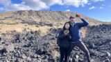 風も待ってましたと言わんばかりの激風。第一展望台の看板までも到達するのもやっと、カルデラを覗き込もうと挑みましたがあまりの激風に断念。もはや3人で笑ってしまいました。w